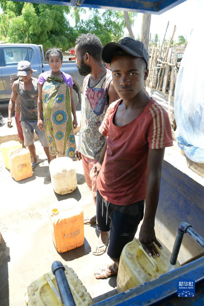 2022年12月8日,在马达加斯加西南部沿海城市图利亚拉,当地人在集中供水房前排队打水。新华社记者 凌馨 摄