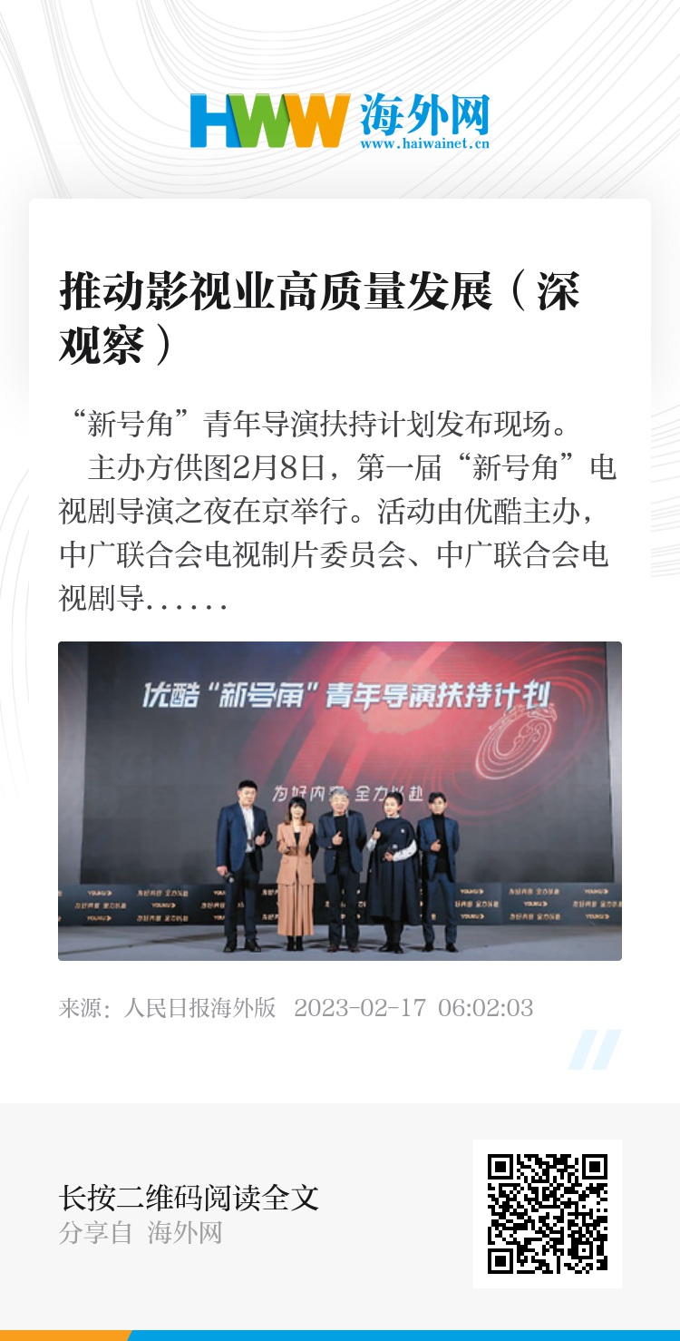 此次论坛上,优酷发布“新号角”青年导演扶持计划,旨在发掘青年导演力量,建立良好行业生态。这一计划由导演郑晓龙担任战略顾问,导演傅东育、张挺、杨阳担任艺术指导,将定期举办青年导演大师课。郑晓龙说,这一计划要从根本上提高导演的文学能力、组织能力和对表演、镜头的理解以及对服化道的使用能力,加强导演对人性、对现实社会的认知,提高他们的美学修养,“影视是一门综合艺术,导演在剧组掌勺。这一计划要帮助青年导演做一个能掌好勺的人”。(本报记者 苗 春)