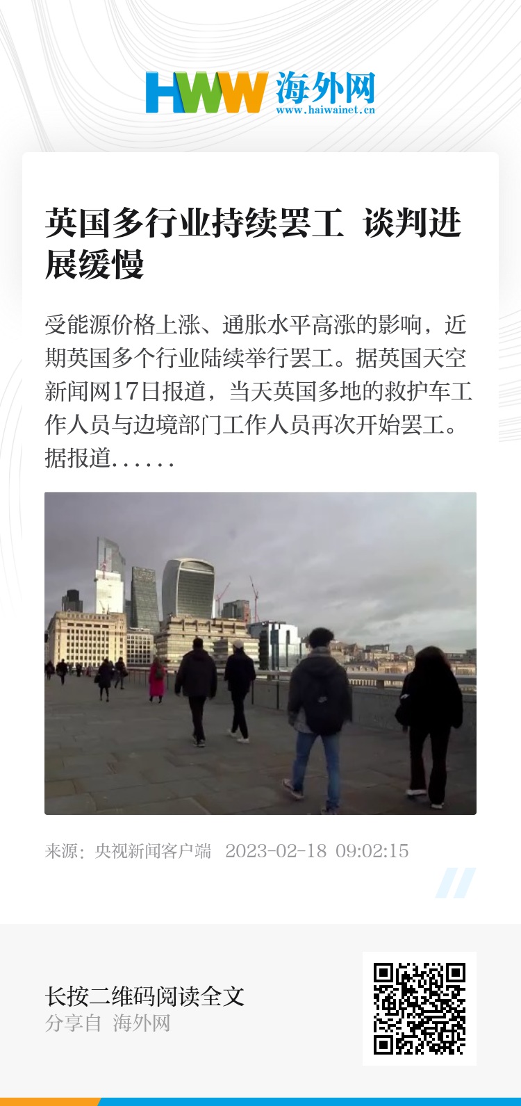 与此同时,英国在多佛港等地的边境部门工作人员17日开始了为期4天的罢工,而英国苏格兰地区邓迪机场的员工当天也进行了罢工。另据报道,英国多所大学的教职工也将于下周再次举行罢工。