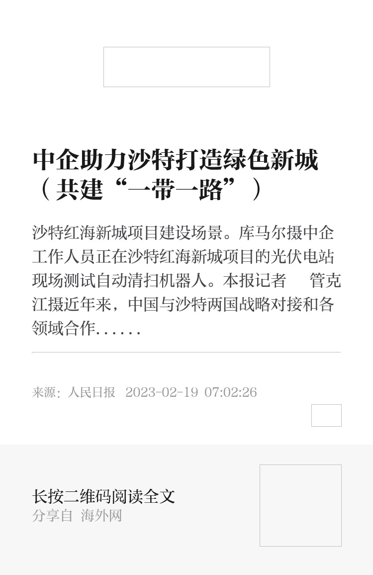 沙特国际电力和水务公司董事长穆罕默德·阿布纳扬说,中国在新能源领域发展迅速,并利用技术、产能等方面的优势对全球新能源发展作出巨大贡献。沙特正在努力实现经济多元化,中国在相关领域的发展经验令沙方受益匪浅。随着沙特“2030愿景”和共建“一带一路”倡议不断深化对接,沙中优势不断互补,未来合作潜力巨大、前景广阔。