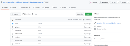 VueJs框架漏洞。VueJs框架为JavaScript前端开发框架,VueJS源代码在GitHub发布,同时本身具备较多漏洞,使用网络指纹嗅探系统可直接扫描探测,GitHub上同样存在专门针对VueJS的漏洞利用工具。