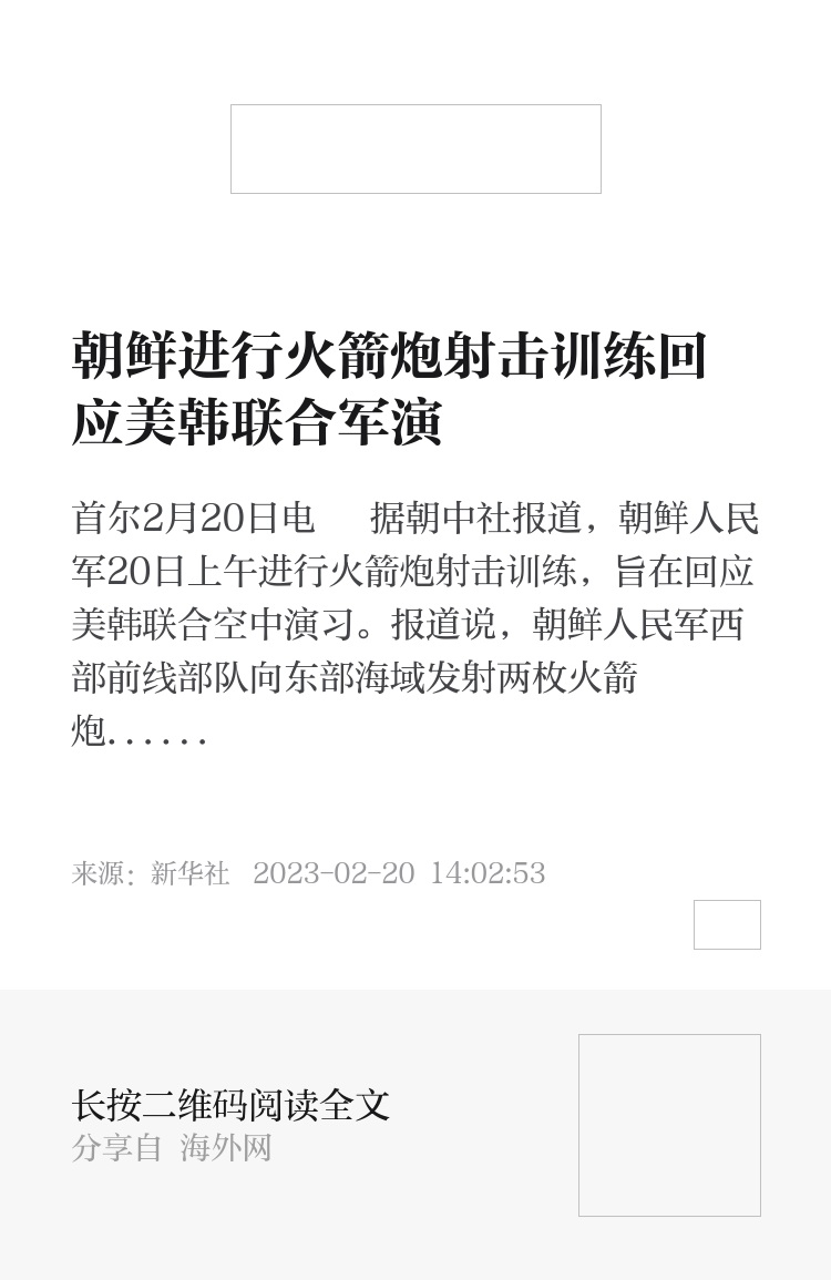新华社首尔2月20日电 据朝中社报道,朝鲜人民军20日上午进行火箭炮射击训练,旨在回应美韩联合空中演习。