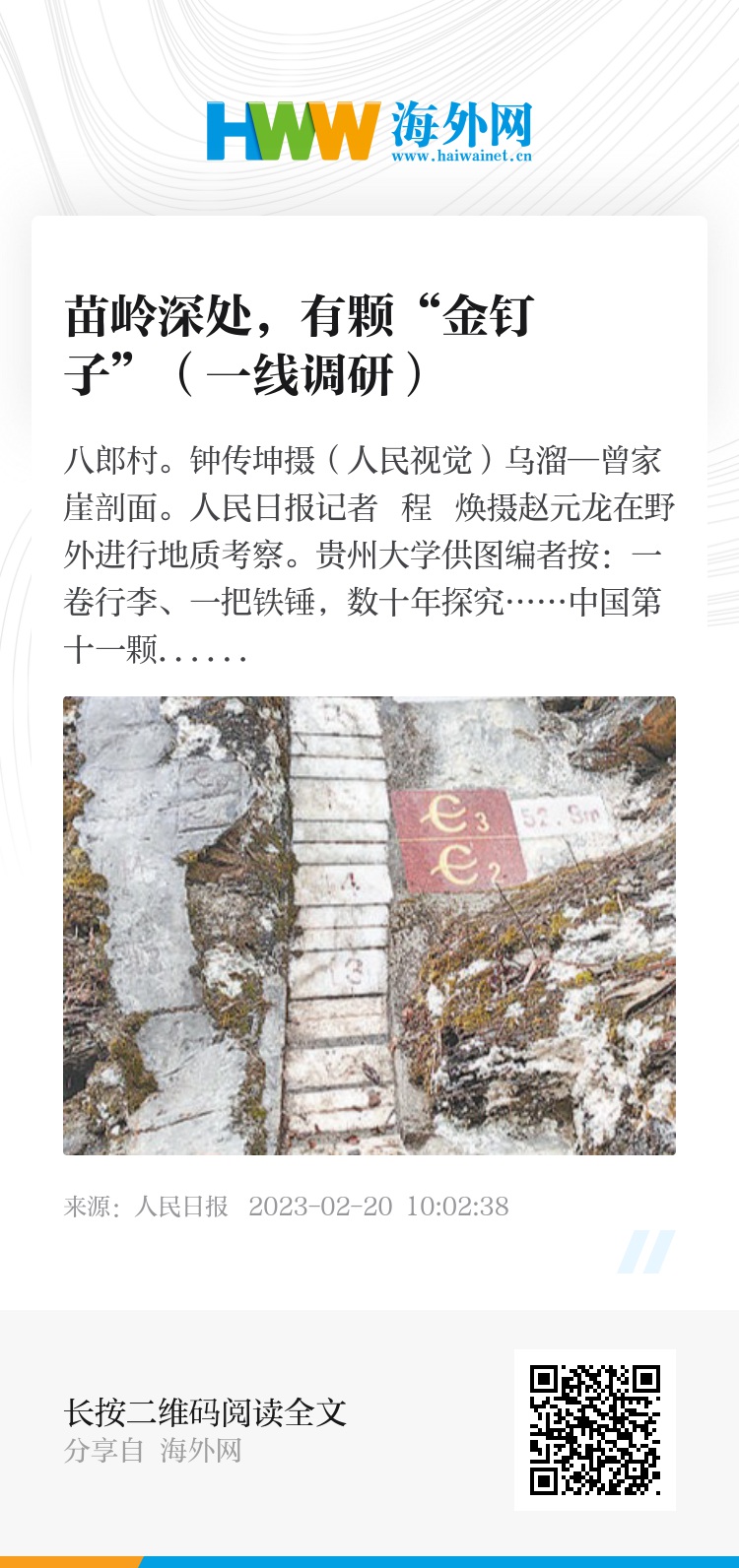斯人已逝,年轻一代的科研工作者接过接力棒,继续踏上了寻找下一颗“金钉子”的征途。而苗岭深处那颗“金钉子”的使命也并未完结,它还在延续着自己的精彩故事。(记者 汪志球 程 焕)