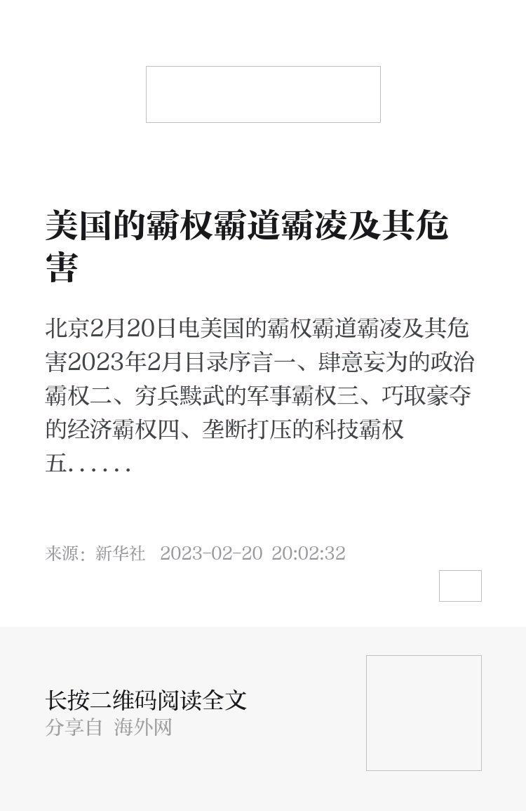 本报告重在通过列举事实,揭露美国滥用政治军事、经济金融、科技文化霸权的种种恶行劣迹,让国际社会进一步看清美方做法对世界和平稳定和各国民生福祉带来的严重危害。