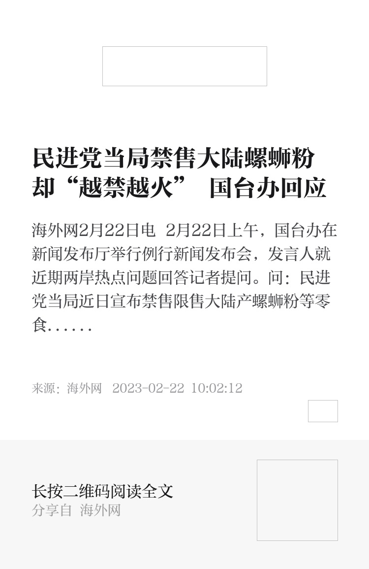 问:民进党当局近日宣布禁售限售大陆产螺蛳粉等零食。在禁令下达后,有岛内网友发现,台湾夜市越来越多摊位开始销售螺蛳粉、酸辣粉等大陆小吃和食品,生意火爆。请问发言人对此有何评论?