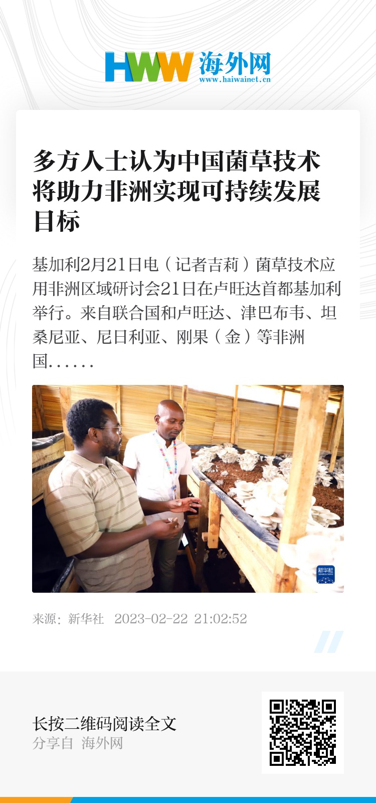 2月21日,参会者在卢旺达首都基加利的一座菌菇农场参观。新华社发(黄万晴摄)