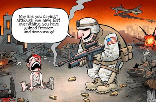 美国四处宣扬所谓的自由与民主,却用战争给人民带来苦难与灾难。(来源:中国日报 罗杰)
