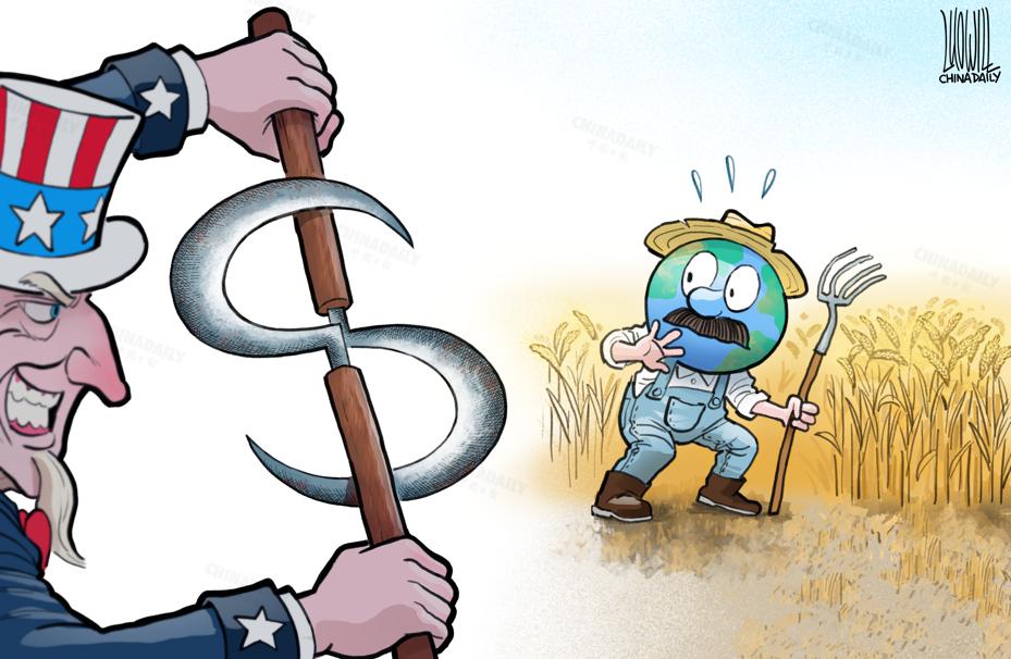 美国利用美元霸权收割世界财富。(来源:中国日报 罗杰)