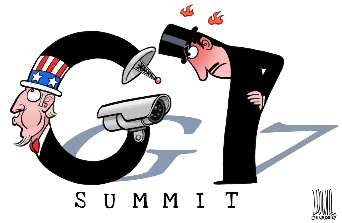 G7峰会前夕,美国蒙上窃听盟友阴影。(来源:中国日报 罗杰)