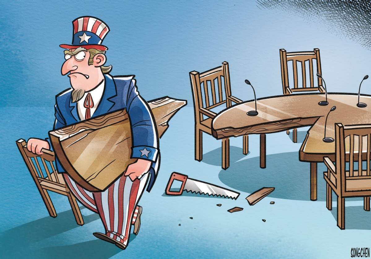 美国“退群”成瘾,一再背弃国际承诺,站到了国际社会的对立面。(来源:中国日报 宋晨)