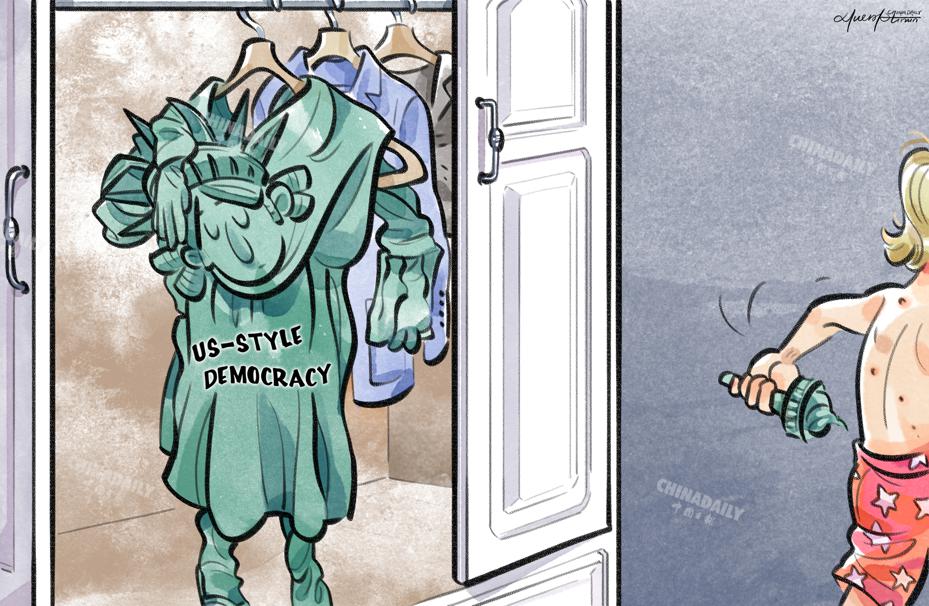 美式民主其实只是一张虚伪的“画皮”。(来源:中国日报 李旻)