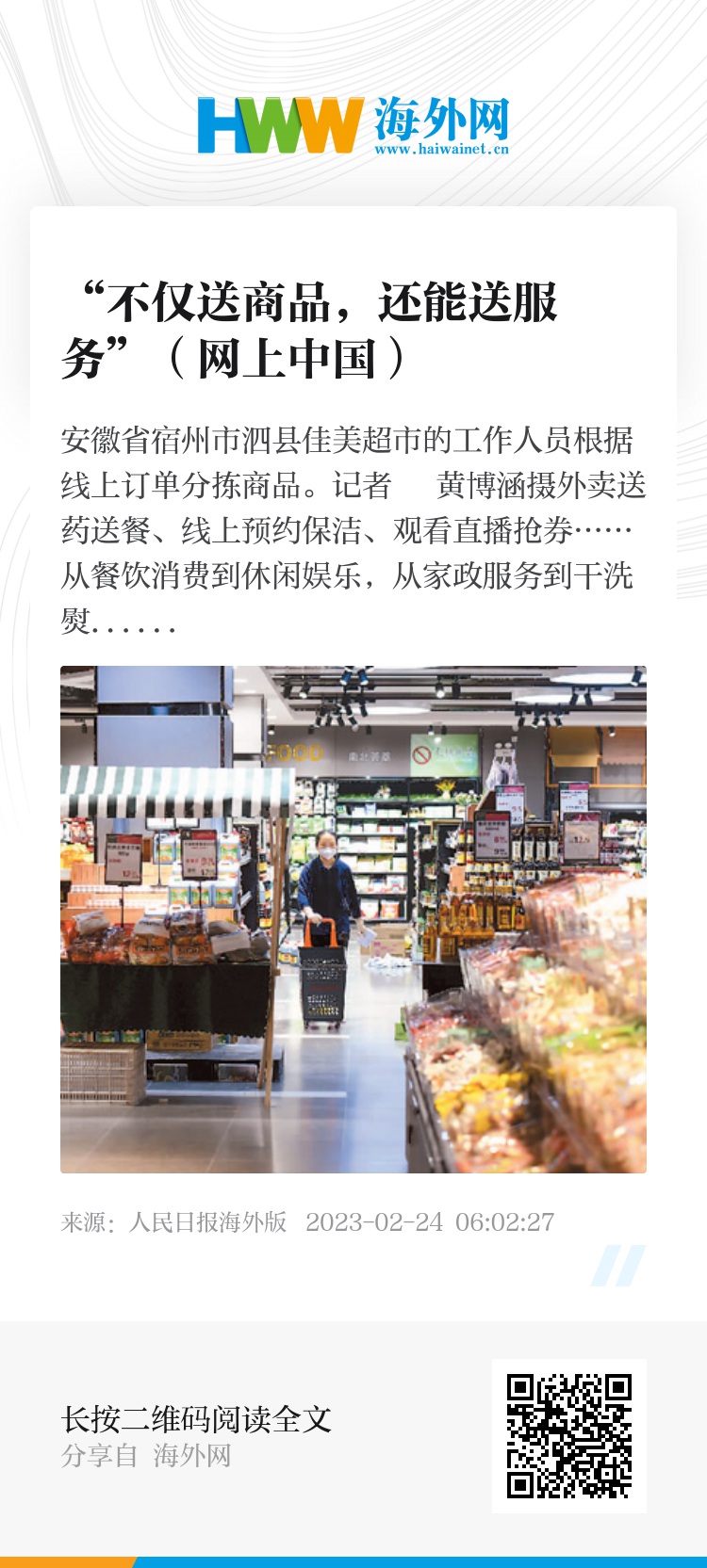 “前几天不小心划破了手,家里不巧没有创可贴,就在美团外卖平台下单了一盒,大概20分钟就送到了!”深圳市民方女士说,“除了医疗药品,像五金零件、洗漱用品等都可以实现送货上门。互联网让生活更方便了,不仅送商品,还能送服务,比如下单洗衣、请小时工等。”