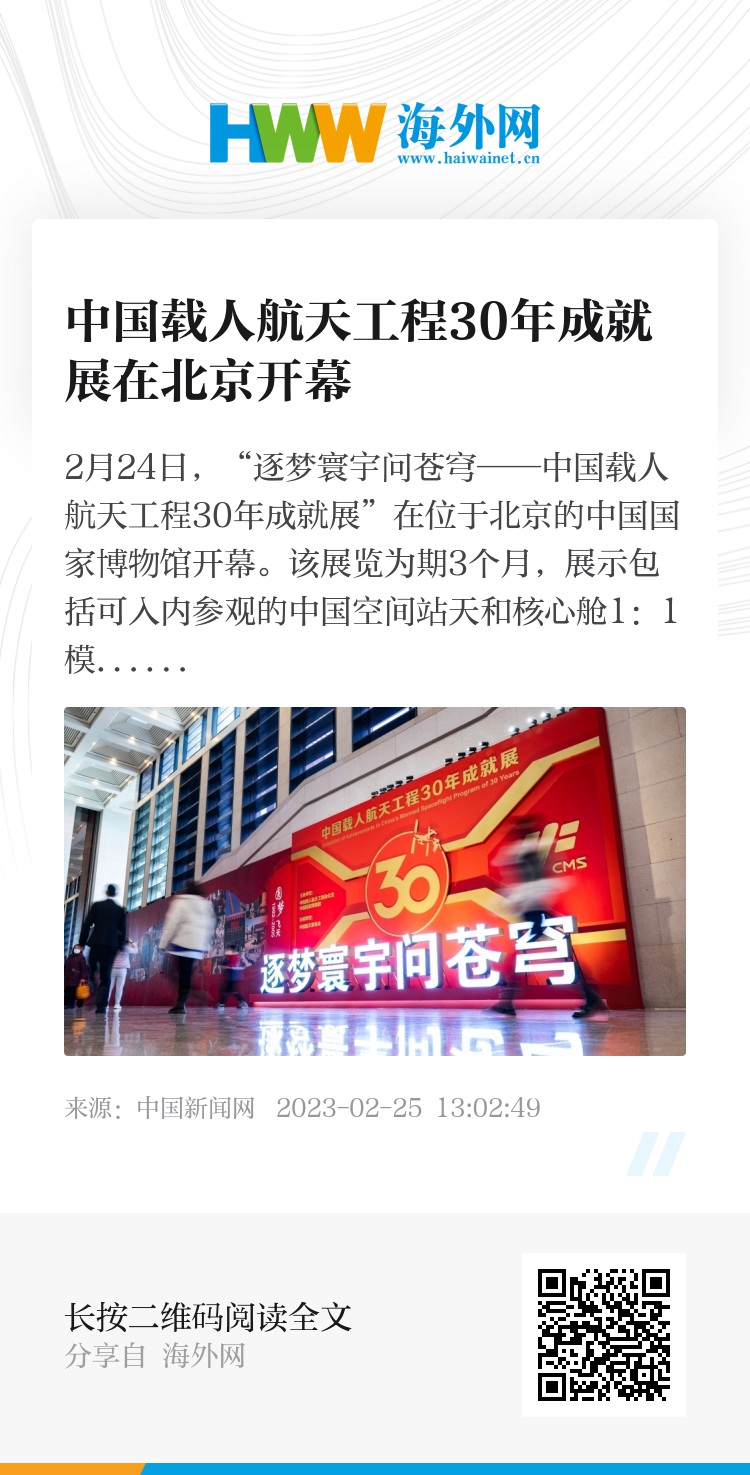 32565869,.中国载人航天工程30年成就展在北京开幕,.2023-02-25 13:50:49,.204428,.张青津