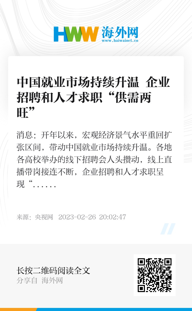 此外,陕西、河北、江苏、新疆等地也陆续启动春季大型人才招聘会,采用线上线下形式,吸引众多企业和求职者入场,劳动力市场呈现“供需两旺”的局面。各地各高校也积极开展促就业“暖心行动”,抢抓春季招聘期,为高校毕业生提供多样化就业指导服务。
