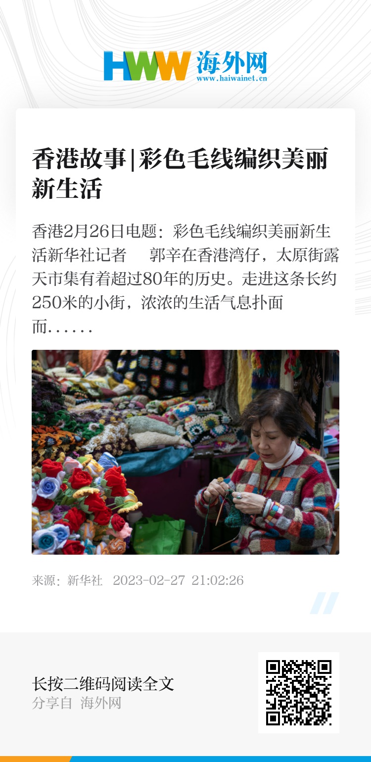 新华社香港2月26日电题:彩色毛线编织美丽新生活