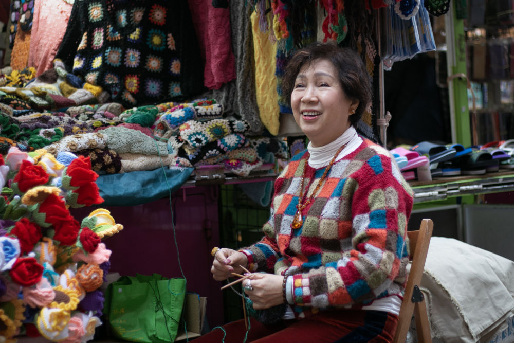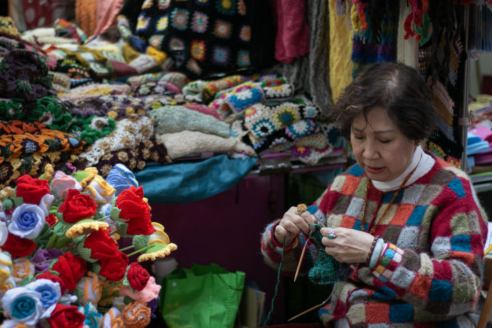 在香港湾仔,太原街露天市集有着超过80年的历史。走进这条长约250米的小街,浓浓的生活气息扑面而来。在街道两旁众多铁皮摊位中,一间挂着琳琅满目毛衣毛线制品的摊位格外引人注目。
