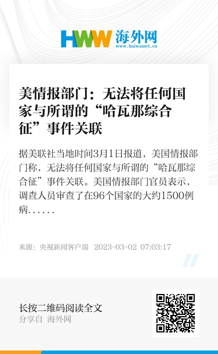据美联社当地时间3月1日报道,美国情报部门称,无法将任何国家与所谓的“哈瓦那综合征”事件关联。