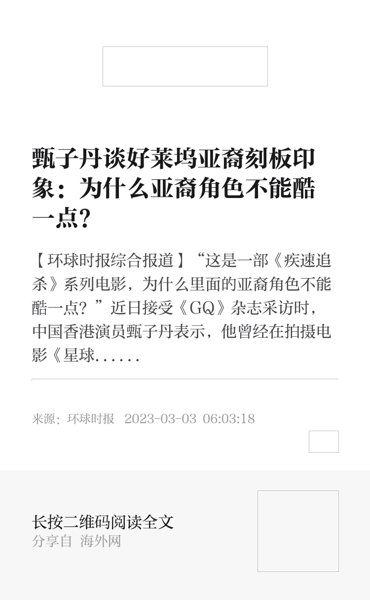 【环球时报综合报道】“这是一部《疾速追杀》系列电影,为什么里面的亚裔角色不能酷一点?”近日接受《GQ》杂志采访时,中国香港演员甄子丹表示,他曾经在拍摄电影《星球大战外传:侠盗一号》和《疾速追杀4》时向片方指出片中的亚裔角色形象过于“套路化”。
