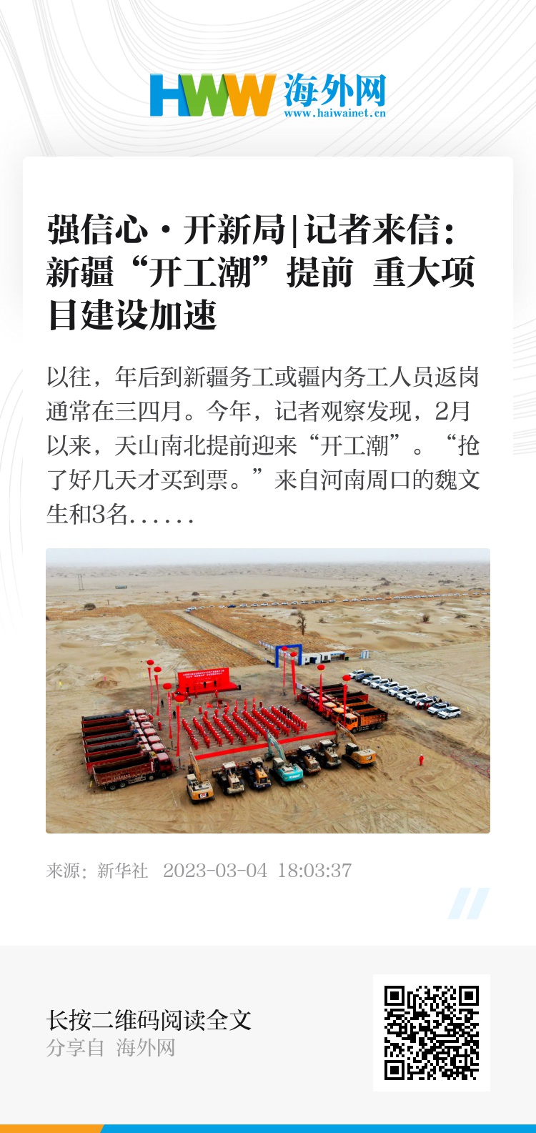 当地提前出现“开工潮”,是新疆新年开局推进经济高质量发展的缩影。新年伊始,2023年新疆维吾尔自治区政府工作报告提出,今年新疆经济社会发展的主要预期目标是:地区生产总值增长7%左右;规模以上工业增加值增长9%左右。