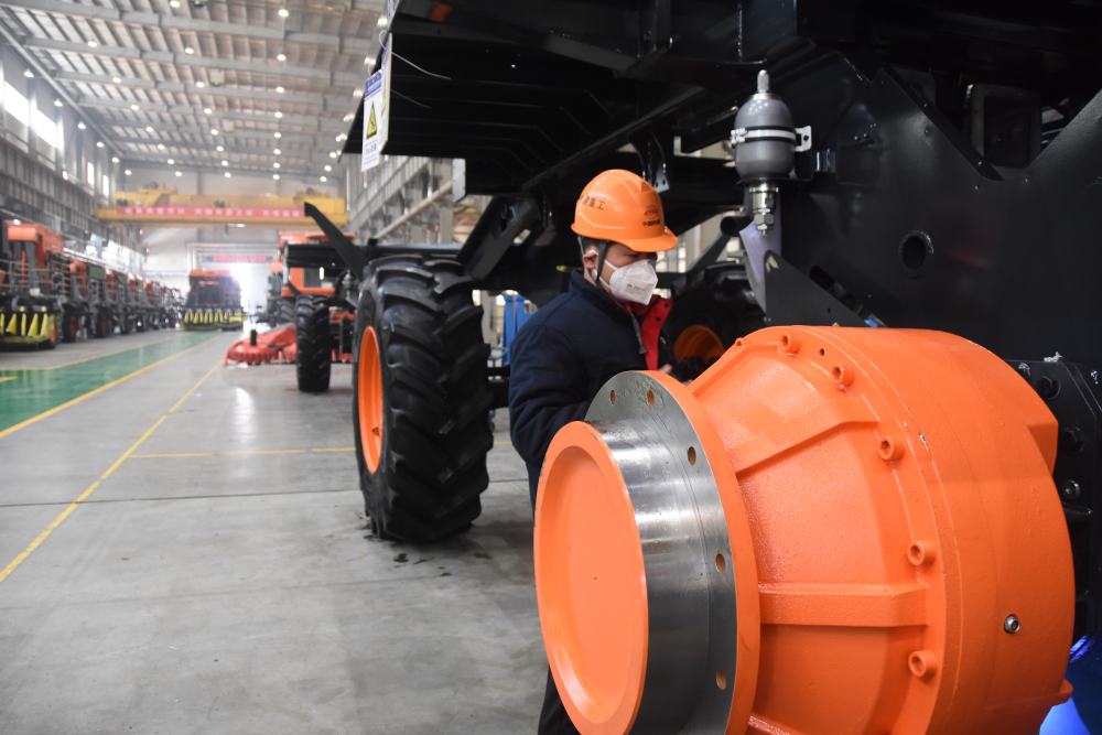 2月2日,铁建重工新疆有限公司装配车间,技术人员正在装配农机部件。(新华社记者潘莹 摄)