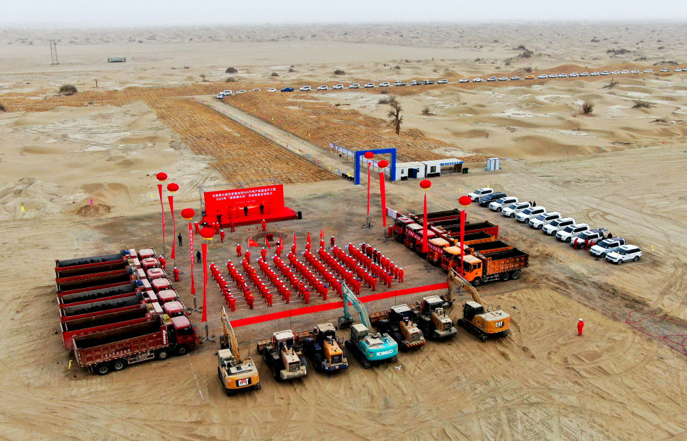 2月10日,位于塔克拉玛干沙漠腹地的我国最大超深油田——富满油田500万吨产能建设工程开工。(受访单位供图)