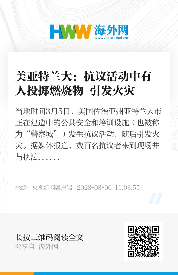 当地时间3月5日,美国佐治亚州亚特兰大市正在建造中的公共安全和培训设施(也被称为“警察城”)发生抗议活动,随后引发火灾。