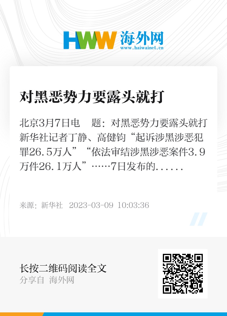 新华社北京3月7日电 题:对黑恶势力要露头就打