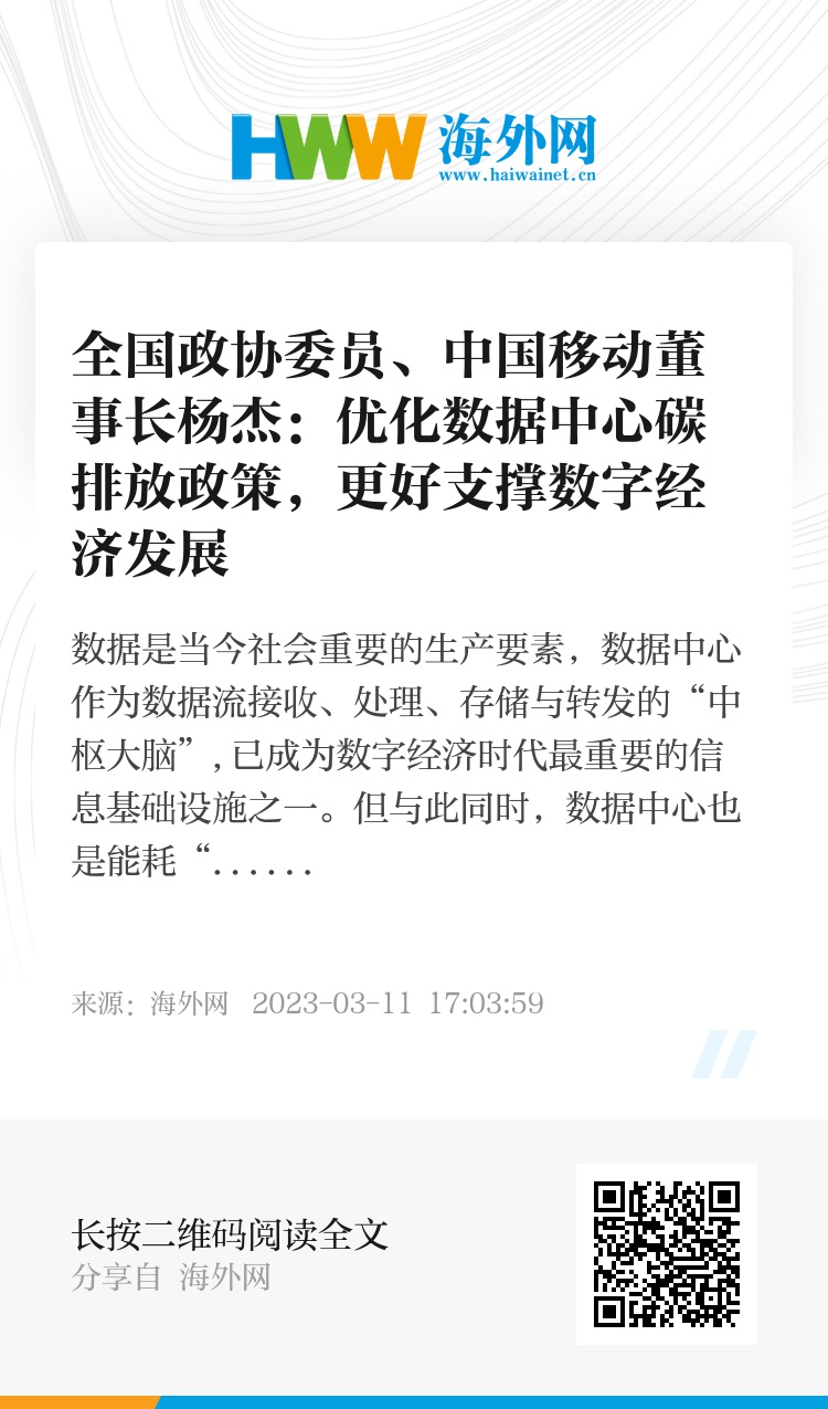 今年两会,全国政协委员、中国移动董事长杨杰将目光聚焦数据中心碳排放管理和政策优化,通过深入调研和分析,提出应对之策。