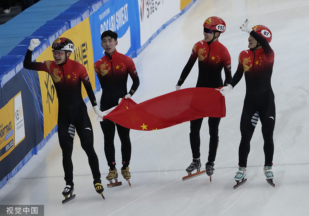 短道速滑世锦赛:中国队获得男子5000米接力金牌(视觉中国)