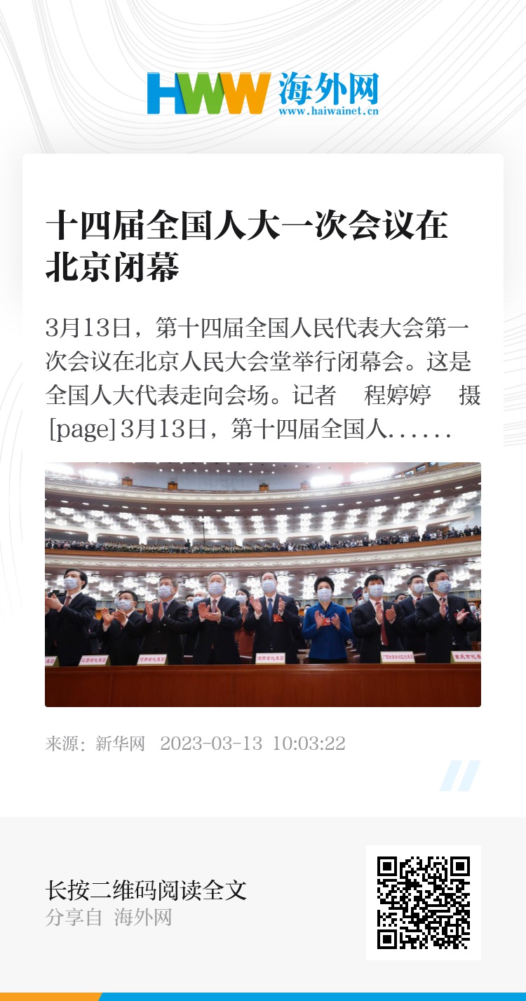 3月13日,第十四届全国人民代表大会第一次会议在北京人民大会堂举行闭幕会。这是全国人大代表走向会场。