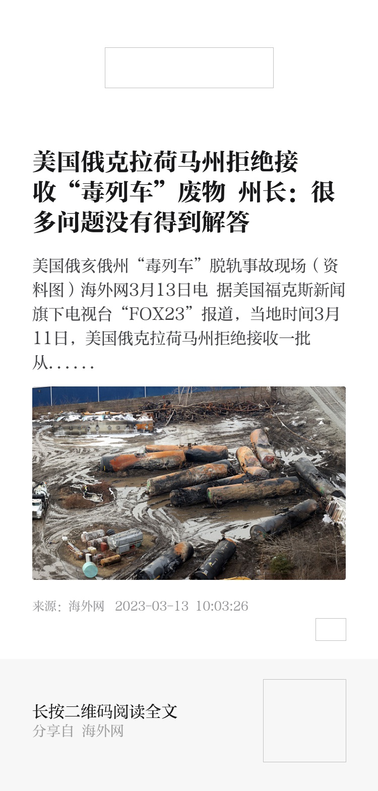 斯蒂特12日接受采访时说,“虽然俄克拉荷马州的设施接收危险废物并不罕见,但俄亥俄州列车脱轨事故缺乏透明度,俄克拉荷马州的官员不同意接收这些有毒土壤。”俄克拉荷马州参议院兰克福德在一份声明中说:“美国环境保护署要求将危险废物转移到俄克拉荷马州,这一要求有太多未知因素。美国环境保护署没能保证俄亥俄州民众的安全,俄克拉何马州也同样关注这些废物可能会产生的有害物质。“(海外网 李芳)
