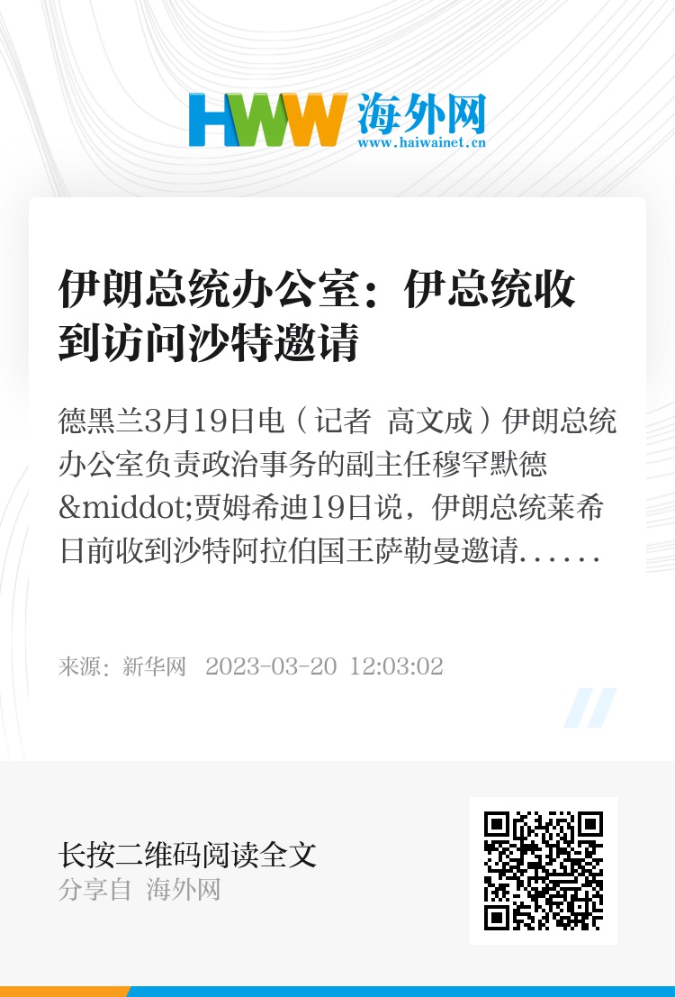 新华社德黑兰3月19日电(记者 高文成)伊朗总统办公室负责政治事务的副主任穆罕默德·贾姆希迪19日说,伊朗总统莱希日前收到沙特阿拉伯国王萨勒曼邀请莱希访沙的信函。