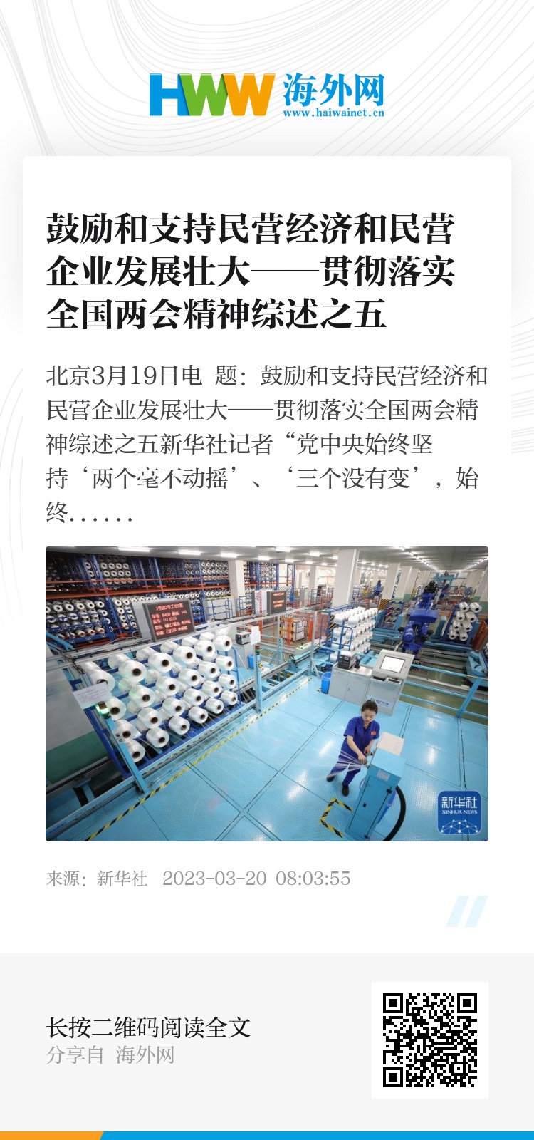 新华社北京3月19日电 题:鼓励和支持民营经济和民营企业发展壮大——贯彻落实全国两会精神综述之五