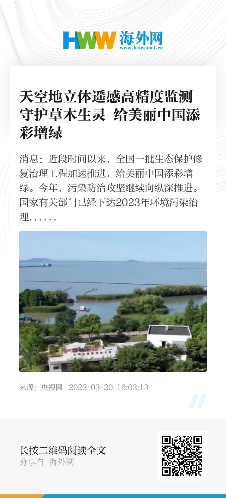 今年,污染防治攻坚继续向纵深推进。国家有关部门已经下达2023年环境污染治理资金预算500多亿元。在江苏太湖西岸,环太湖农业面源污染拦截工程近日开工,将有效减少氮、磷等导致湖泊富营养化的物质进入太湖。江苏省今年计划开工166个太湖保护治理工程,总投资112亿元。