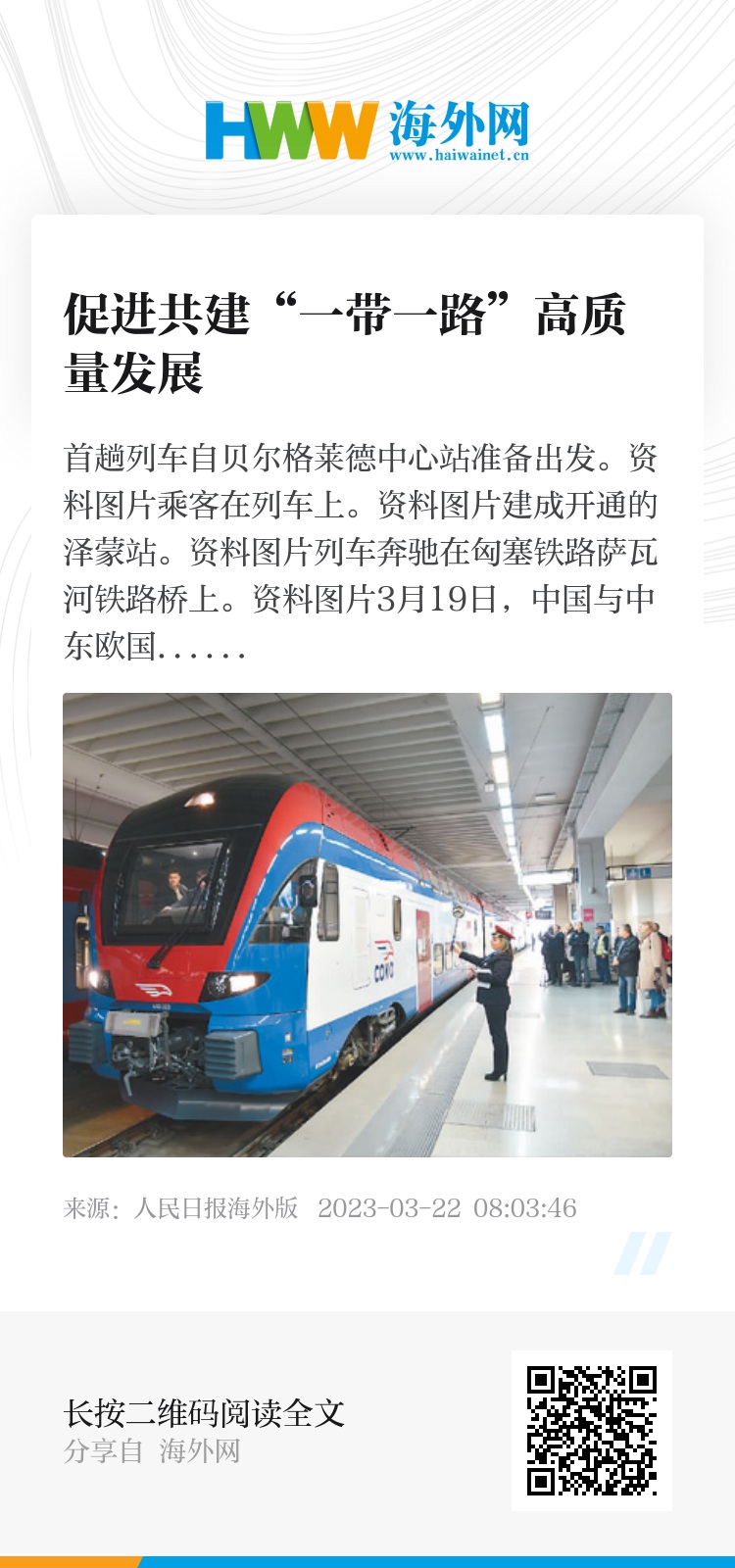 3月19日,中国与中东欧国家共建“一带一路”重点项目、匈塞铁路塞尔维亚境内贝诺段(贝尔格莱德至诺维萨德)安全有序运营满一周年,累计发送旅客293万人次,极大便利了沿线民众出行,成为中塞两国铁路国际合作旗舰项目。