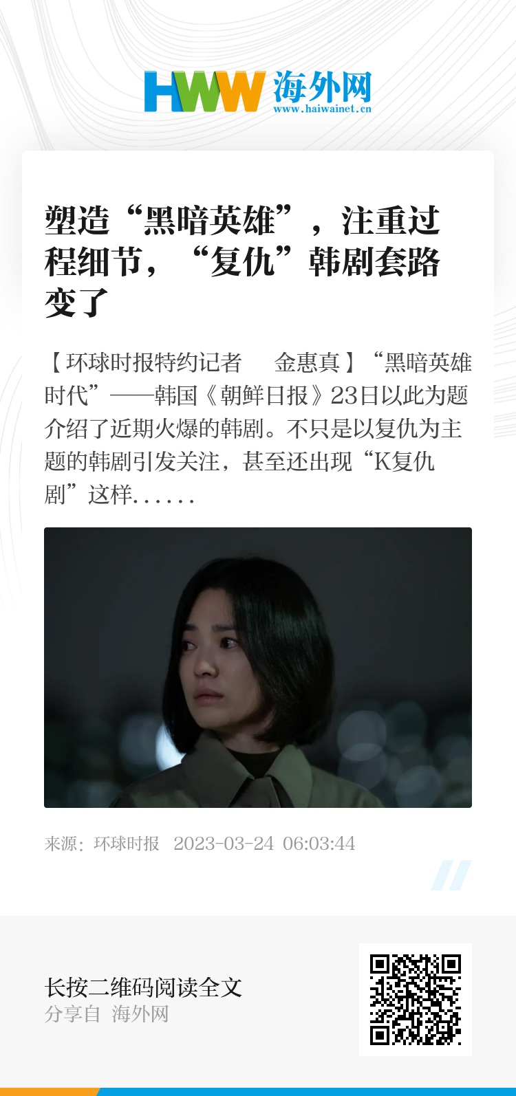 【环球时报特约记者 金惠真】“黑暗英雄时代”——韩国《朝鲜日报》23日以此为题介绍了近期火爆的韩剧。不只是以复仇为主题的韩剧引发关注,甚至还出现“K复仇剧”这样的新词,成为继K-POP(韩国流行音乐)之后又一新标签。以往韩剧中,“复仇”主题一直是收视与口碑双丰收的法宝,如今的“K复仇剧”又有何不同?
