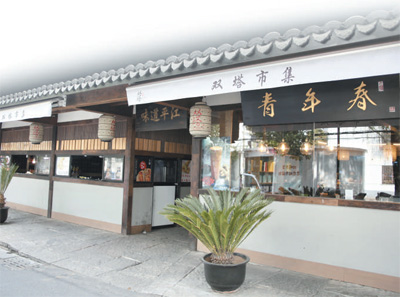 从外观上看,美观大气是双塔市集给人的第一印象:市集南侧主入口处,是三扇玻璃门和一个大落地窗,暖色灯光投射下,开阔的视野看得到涌动的人群;西侧一排店铺沿街而设,又和市集相通,形成多个进出通道,往来行人络绎不绝。