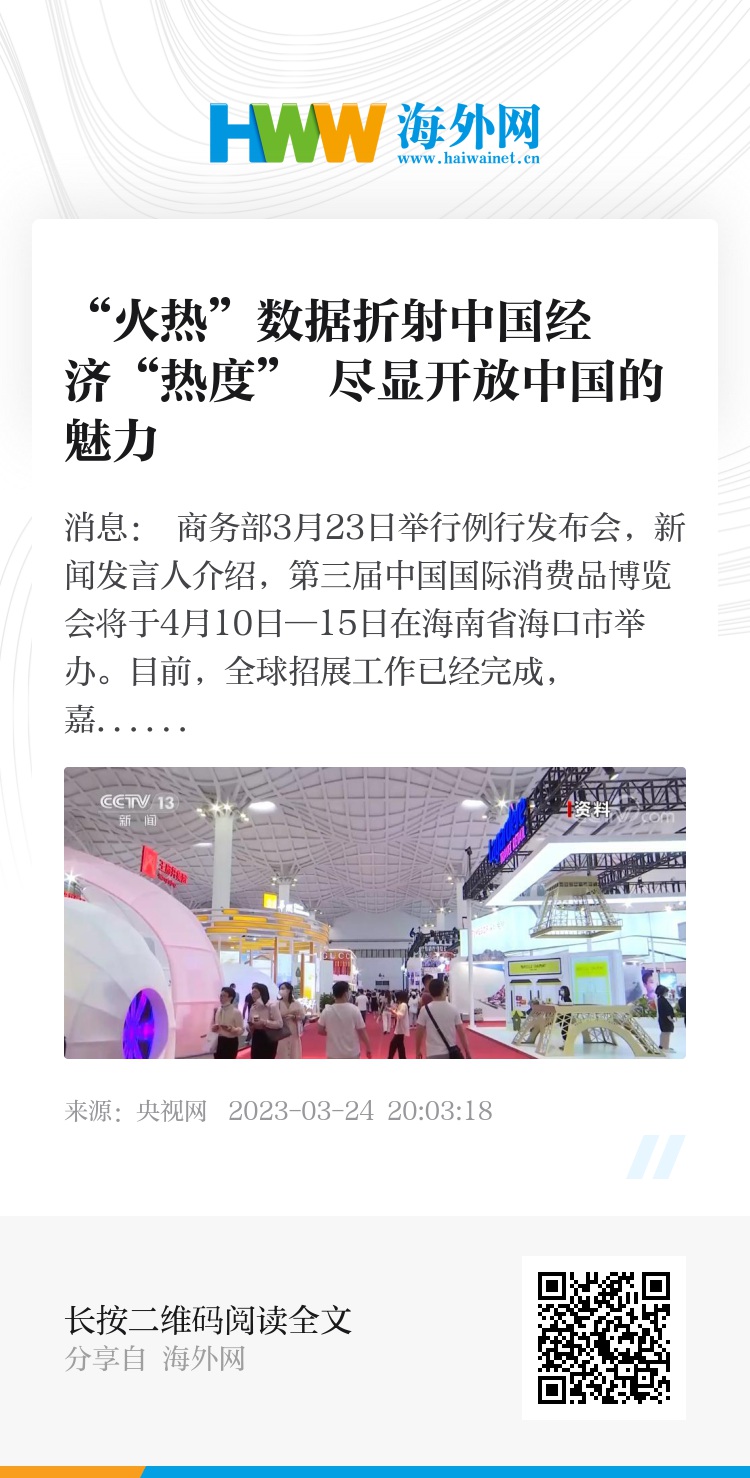 在这个春天,中国市场继续主动向全球开放。一个个国际展会、一组组“火热”数据,折射出中国经济的“热度”,也显现出开放中国的魅力。