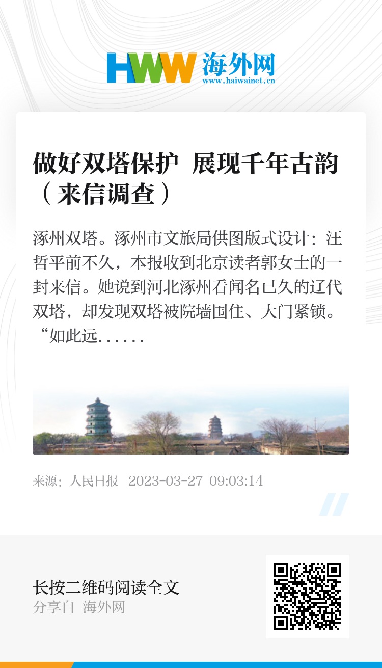 “能在城区里保留下这么精致的大型古塔非常难得,更何况双塔本身还有非常厚重的历史文化传承。为什么不对外开放呢?”带着唐大华的问题,记者采访了涿州市文旅部门的工作人员。