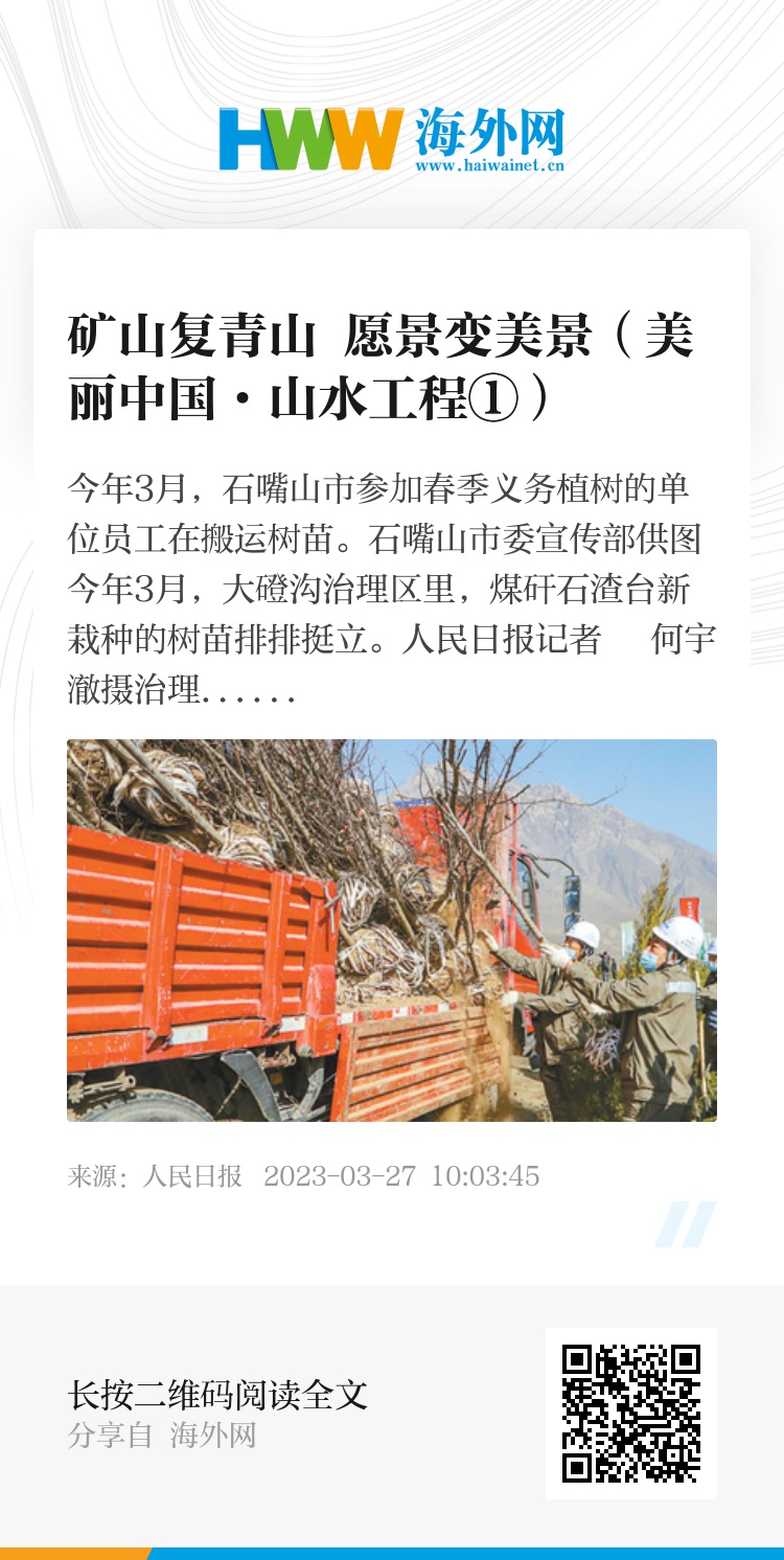 “通过‘贺兰山分片包植增绿’活动,一年可植树1.2万亩。”石嘴山市自然资源局局长贾增军说:“更重要的是,分片包植任务激发了大家的积极性,也让大家感受到贺兰山治理成果的来之不易。现在造林任务就要完成,从矿区关停整治,到内外一体化生态修复,再到治理成果系统提升,贺兰山正在披上绿装。”