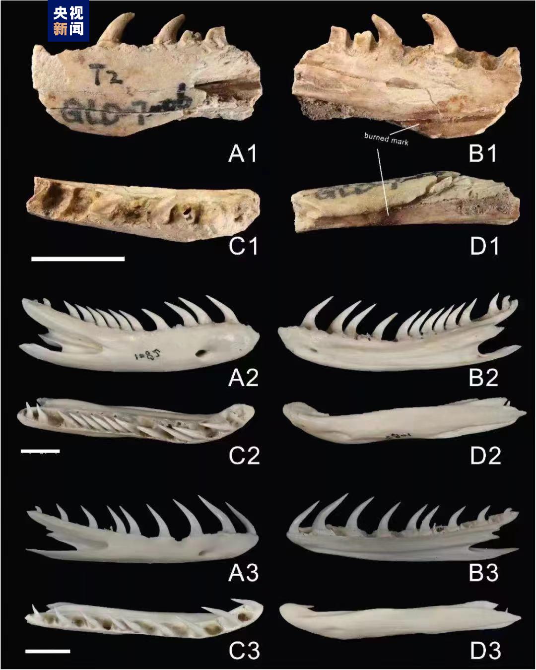 这些蛇骨表面大多存在一些疑似的烧灼痕,在与其共同堆积的哺乳动物遗存骨骼中,则普遍存人工切割或敲砸的痕迹。考虑到上述贝丘遗址完全系人为堆积而成,其中的大型蛇骨很有可能是人类猎食后的残留,且不排除此地的史前人类用烧烤的方式加工肉食的可能。研究结果提示,华南地区猎食蛇类的历史可能上溯至六千年前的新石器时代。相关研究成果于今年发表于国际期刊《历史生物学》。