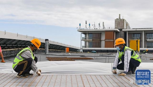 工人在博鳌零碳示范区建筑绿色化改造项目中施工(1月12日摄)。