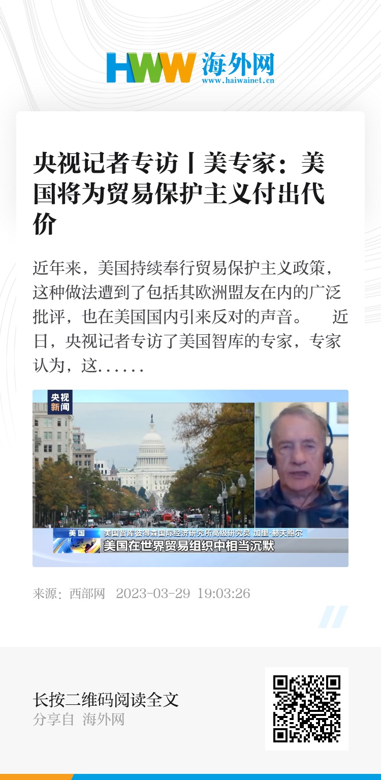 近日,央视记者专访了美国智库的专家,专家认为,这种人为“筑墙”“脱钩”的做法不仅不利于全球贸易发展,还会造成美国自身经济受损。
