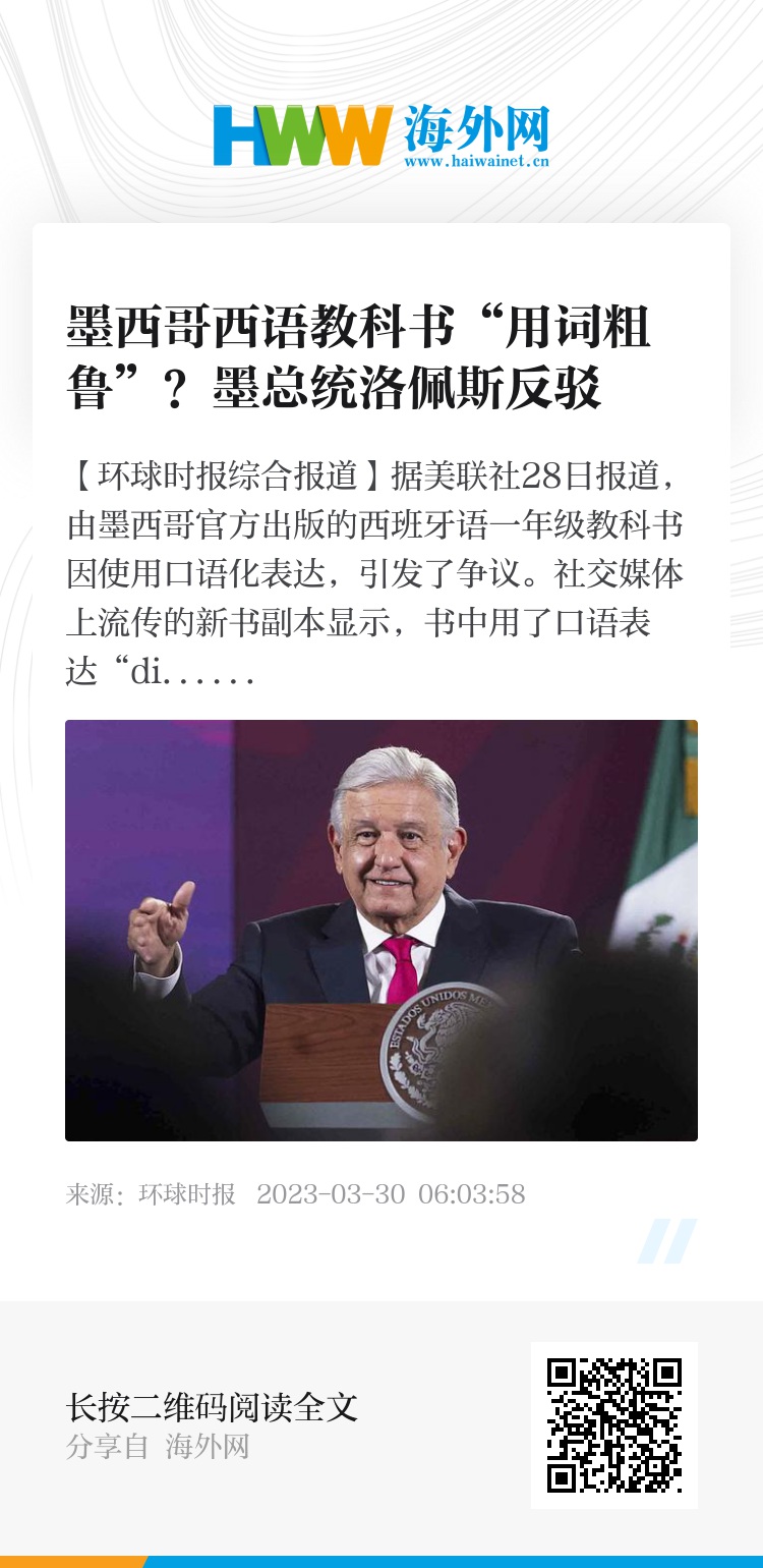 尽管新教材还未普及,但有一部分墨西哥家长对此表示非常担忧。他们认为,低年级学生在学校应当以学习书面语为主,教科书中的用词应当更严谨。在27日的新闻发布会上,墨西哥总统洛佩斯表示,他认为让学生了解不同用词很重要。他称,墨西哥融合了多种文化,而语言表达和文化渊源密不可分。(李迅典)