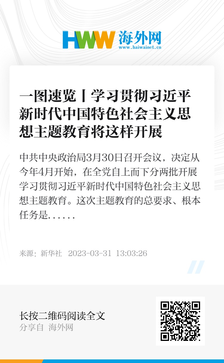 中共中央政治局3月30日召开会议,决定从今年4月开始,在全党自上而下分两批开展学习贯彻习近平新时代中国特色社会主义思想主题教育。