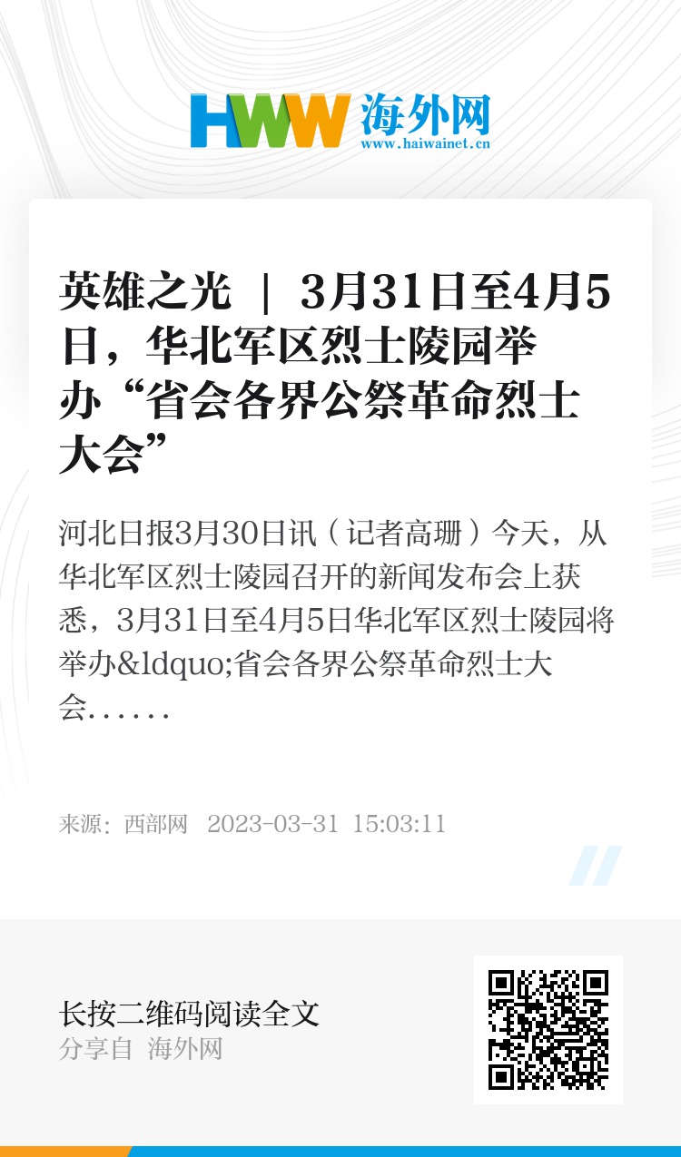 为充分做好烈士褒扬纪念工作,合理调配来园时间和活动场次,华北军区烈士陵园现已开通预约服务,预约电话为0311-67597209。同时,清明节期间,陵园将开展以“2023·崇尚·清明祭英烈”为主题的纪念活动,以退役军人事务部门户网站(http://www.mva.gov.cn)和中华英烈网(http://www.chinamartyrs.gov.cn)为主要平台,结合华北军区烈士陵园网站(http://www.hbjqlsly.com)以及其他传统媒体和新媒体渠道,积极引导群众参与活动,通过网络平台祭扫纪念英烈,进一步营造崇尚英烈、缅怀英烈、学习英烈、捍卫英烈、关爱烈属的浓厚社会风尚。