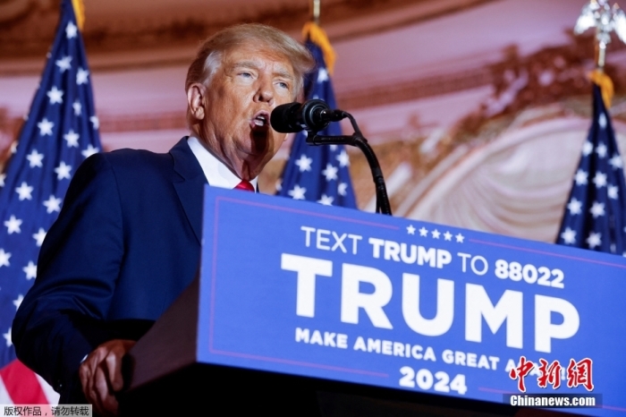 当地时间2022年11月15日,美国前总统特朗普在佛罗里达州海湖庄园发表演讲,正式宣布将参加2024年美国总统大选。据美媒报道,特朗普已正式提交文件加入2024年总统竞选。这是特朗普第三次发起美国总统竞选活动。