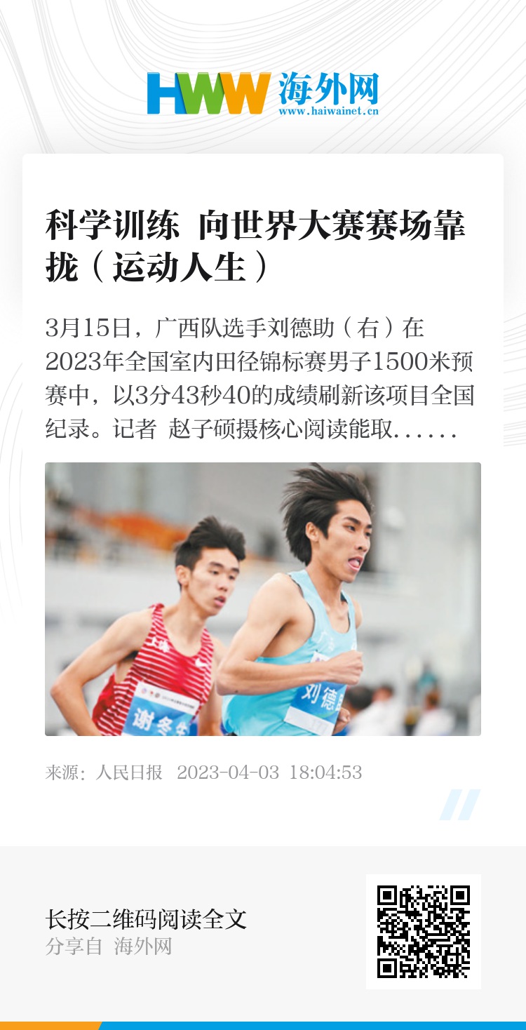 而一步一个脚印的刘德助,同样准备好迈出自己的下一步。“今年有两个目标,第一个是刷新全国纪录,第二个是获得杭州亚运会参赛资格,而后者的难度更大些。”刘德助说,“对世锦赛和奥运会等世界大赛,憧憬肯定是有的,但目前成绩还达不到,希望通过科学训练向世界大赛赛场靠拢。”