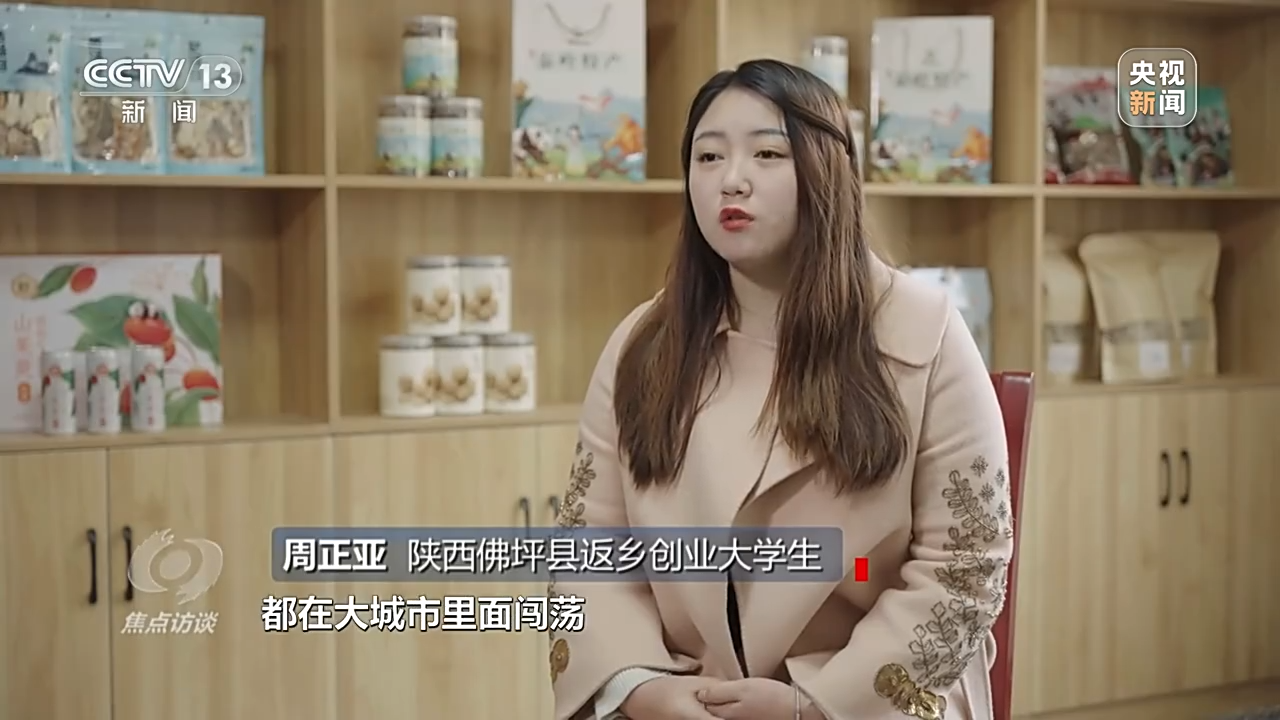 陕西佛坪县返乡创业大学生 周正亚:“以前是打工人,只要一天把工作做好,吃好玩好就好。但是,回来之后在做电商过程中,自己更能担起很多责任。因为我想把家乡这些好的产品、好的风景推广出去,让更多人能够看到。”