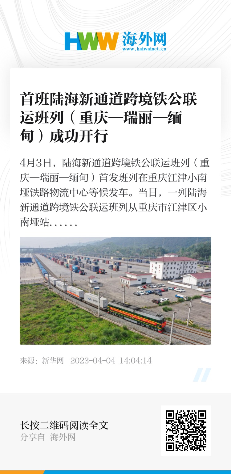 32586186,.首班陆海新通道跨境铁公联运班列(重庆—瑞丽—缅甸)成功开行,.2023-04-04 14:15:14,.204372,.刘素素